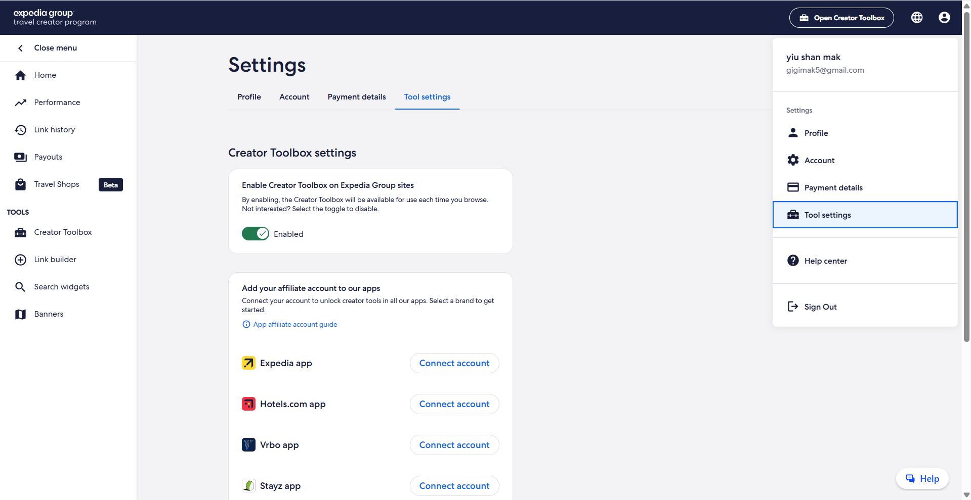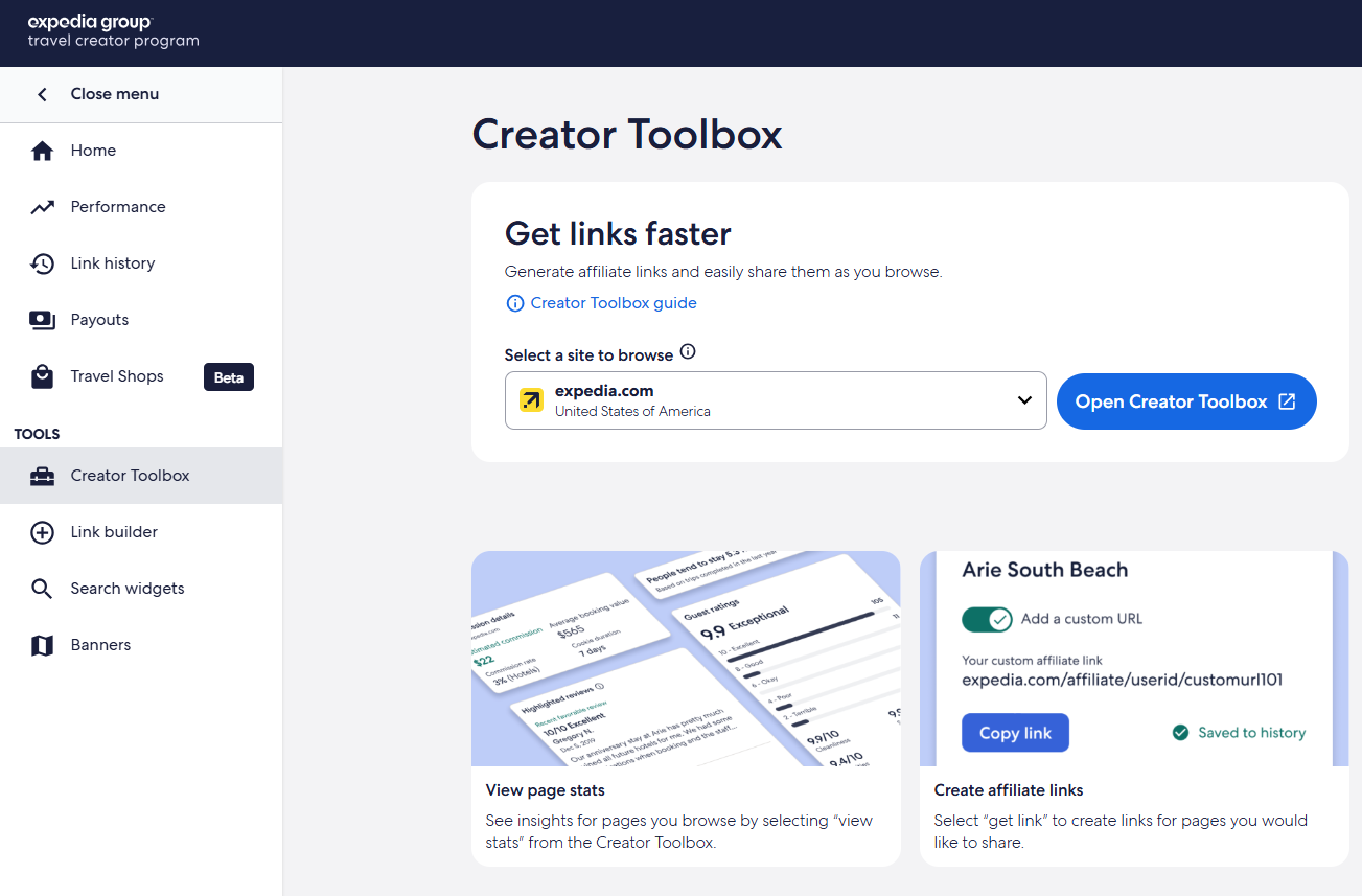 - Choose a site from the dropdown menu and click “Open Creator Toolbox.”